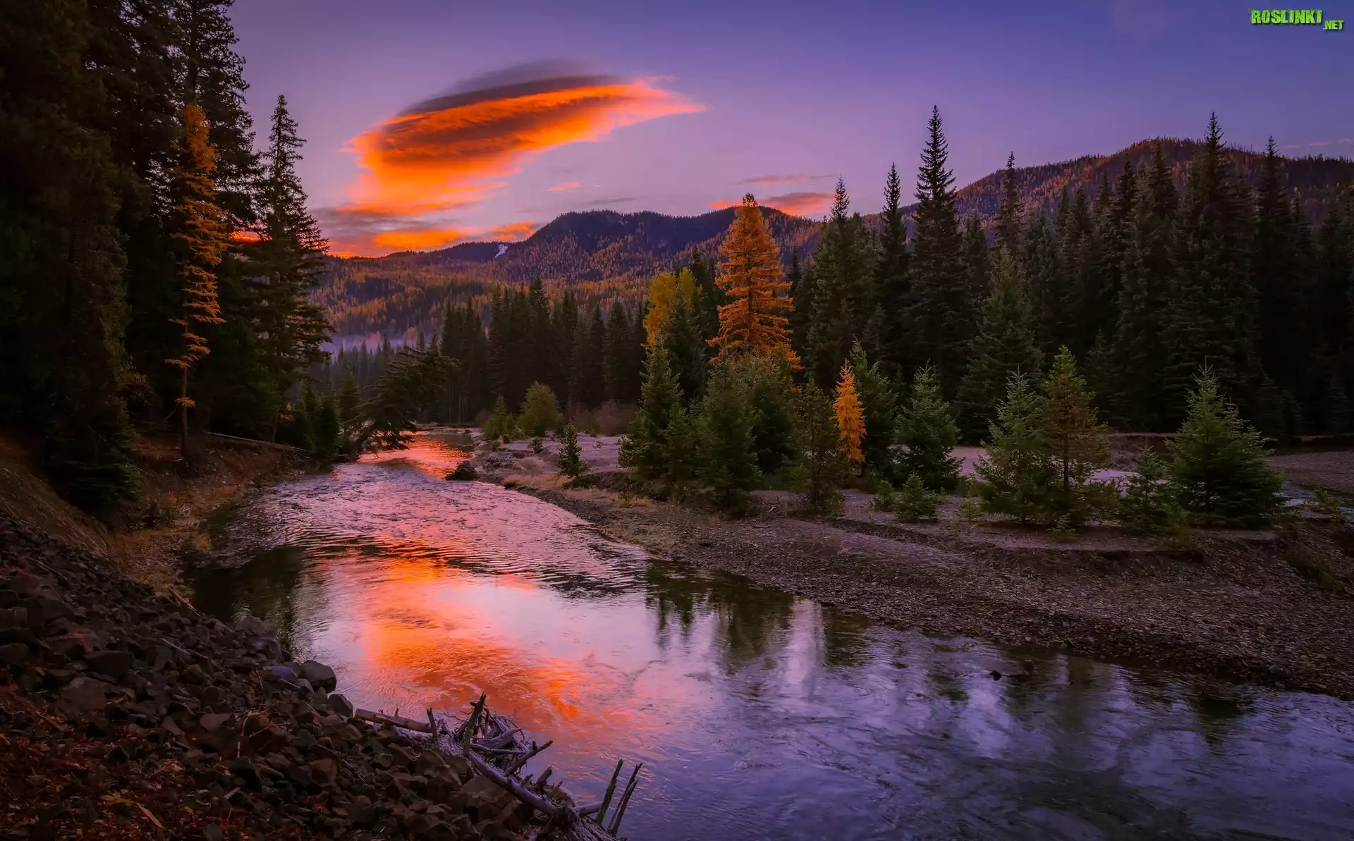 Rośliny: Rzeka, Góry, Drzewa, Las, Jesień
