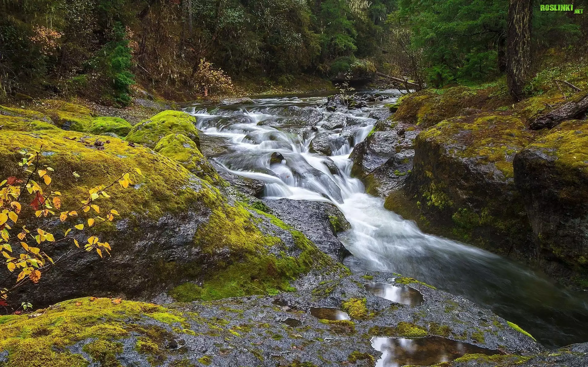 Rośliny: Rzeka, Skały, Mchy, Las, Jesień