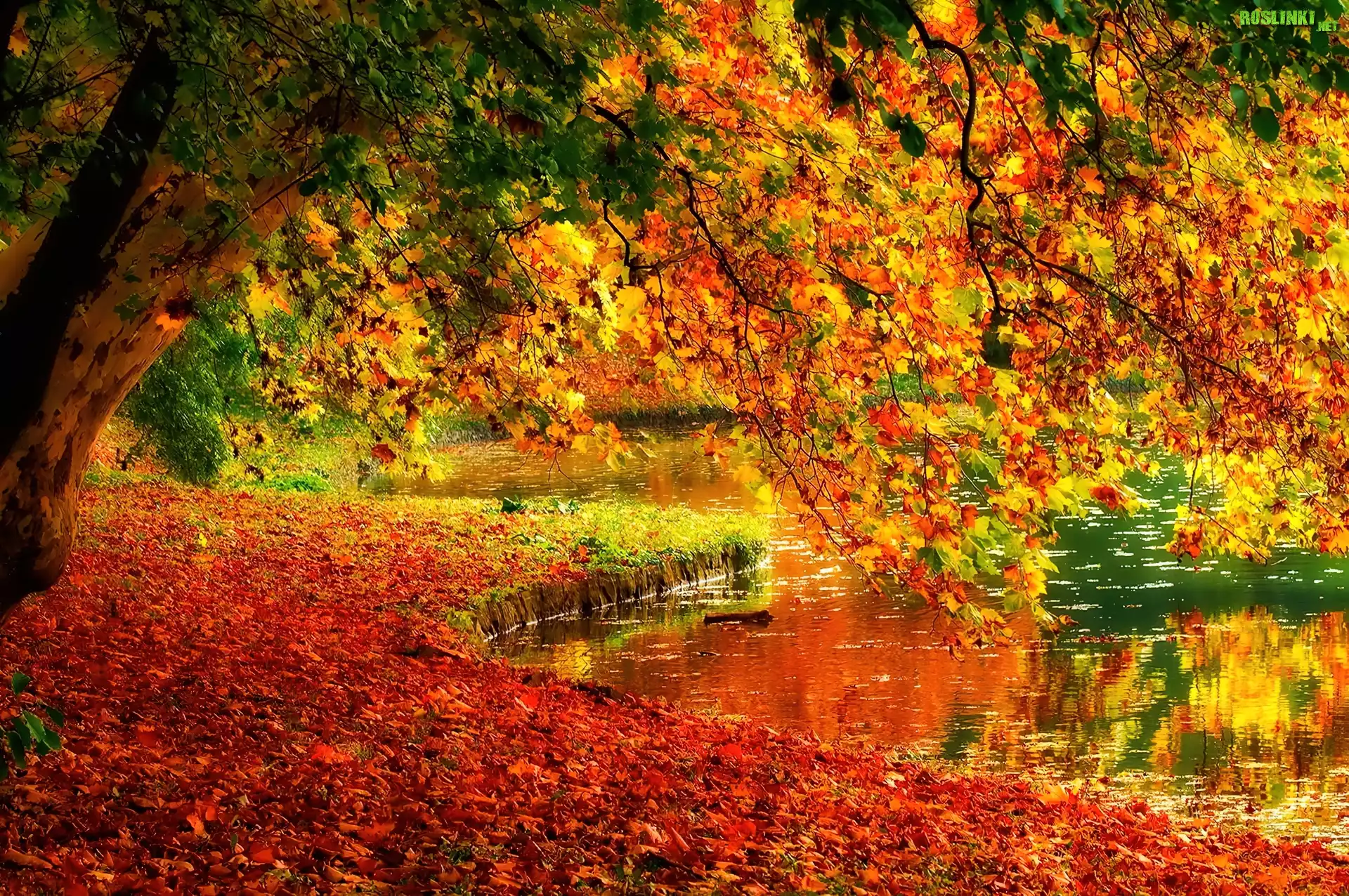 Rośliny: Rzeka, Drzewa, Liście, Jesień