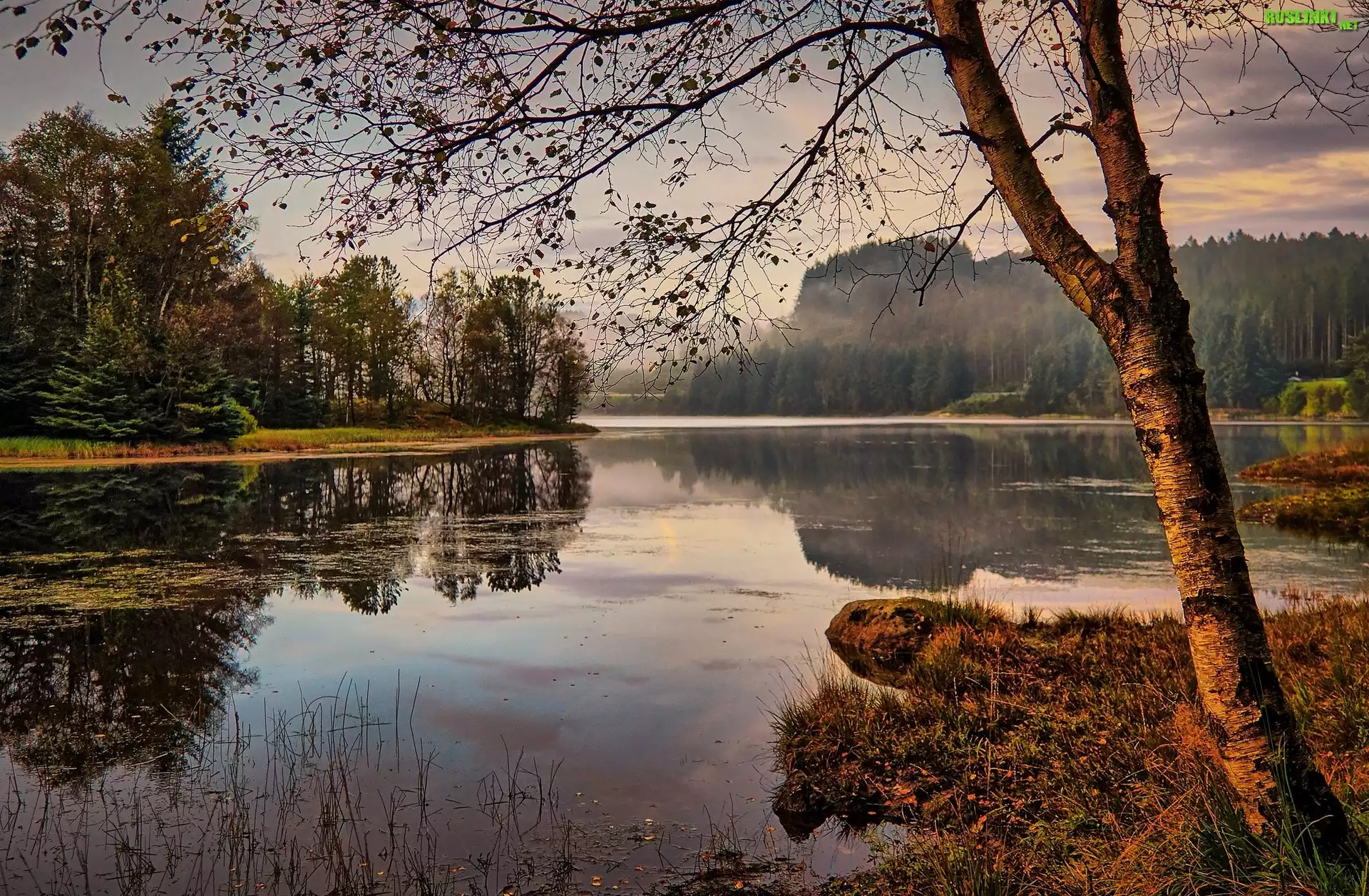 Rośliny: Rzeka, Drzewa, Mgła, Odbicie
