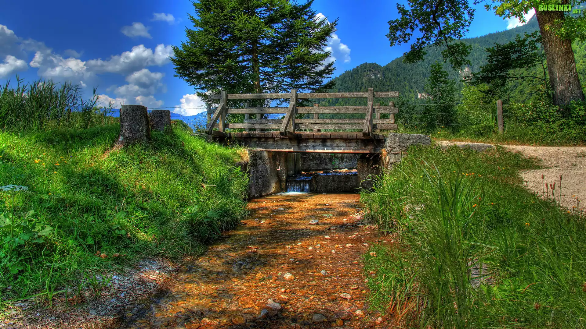 Rośliny: Mostek, Rzeka, Roślinność, Drzewa, Bischofswiesen, Bawaria, Niemcy