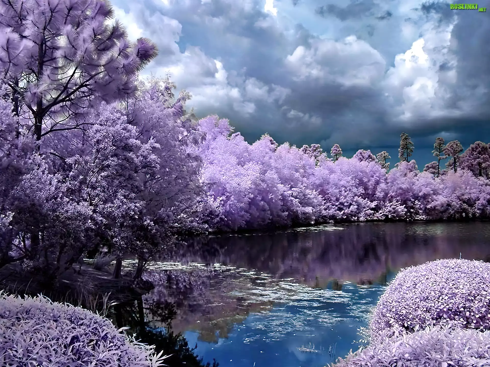 Rośliny: Rzeka, Kwitnące, Drzewa, Zachmurzone, Niebo, Odbicie