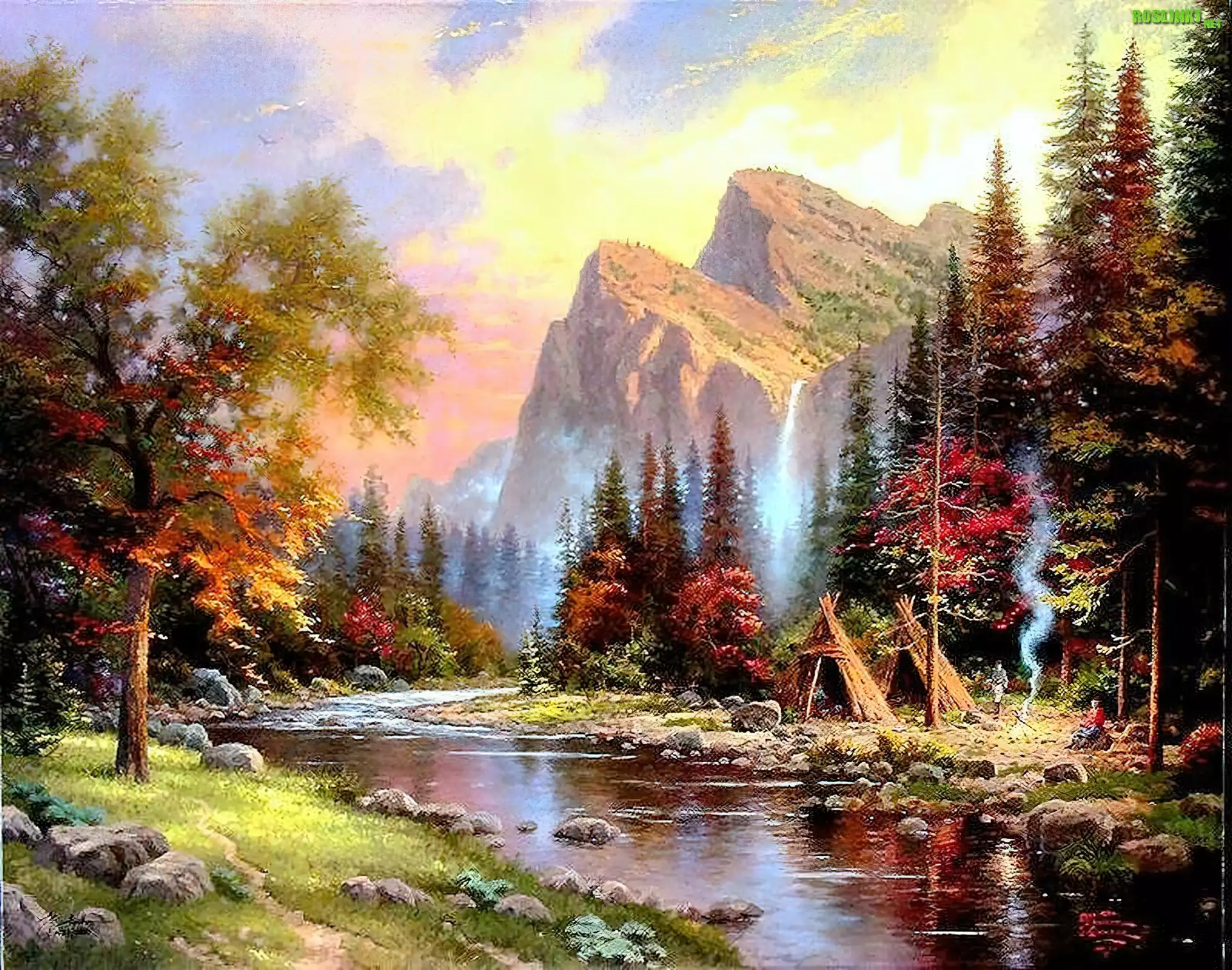 Rośliny: Rzeka, Góry, Obozowisko, Obraz