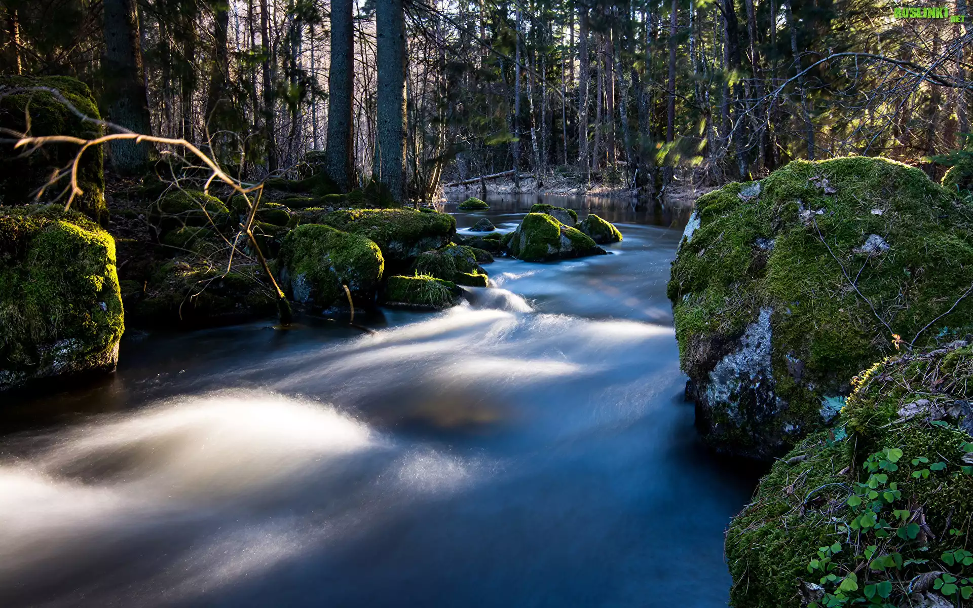 Rośliny: Las, Rzeka, Omszone, Kamienie, Drzewa