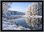 Zima, Rzeka, Oszronione, Drzewa, Odbicie