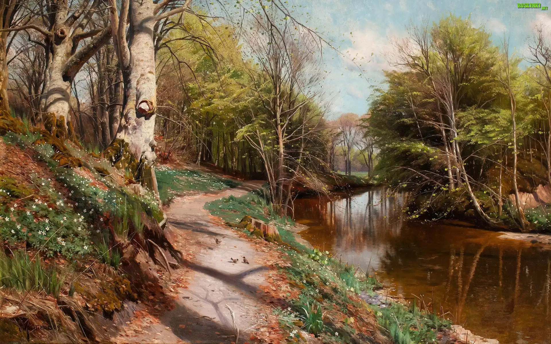 Rośliny: Rzeka, Droga, Drzewa, Malarstwo, Peder Monsted