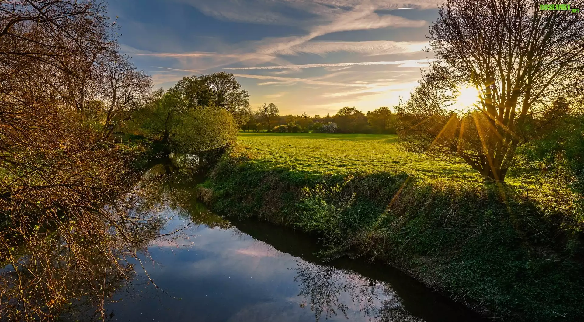 Rośliny: Rzeka, Drzewa, Promienie słońca