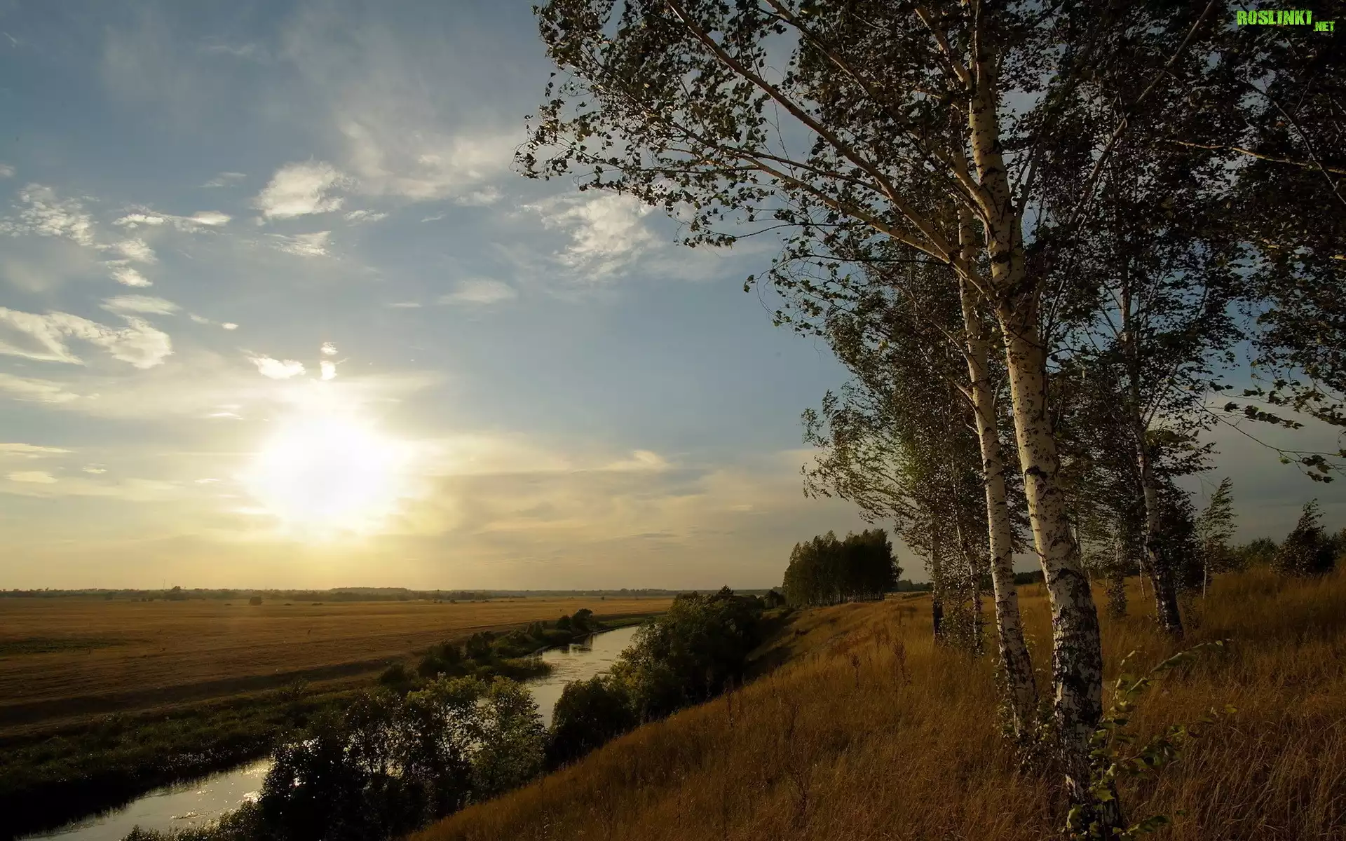 Rośliny: Rzeka, Pola, Łąki, Brzozy, Przebijające, Światło