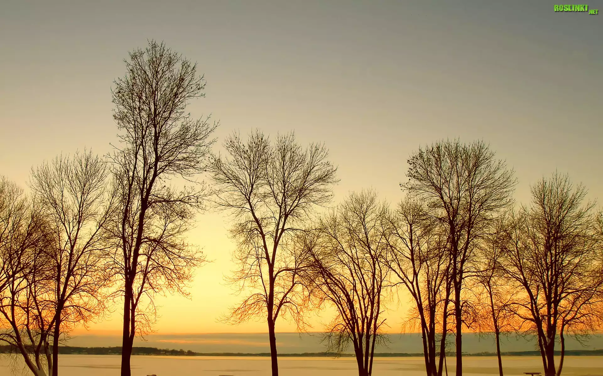 Rośliny: Rzeka, Drzewa, Wschód, Słońca, Jesień
