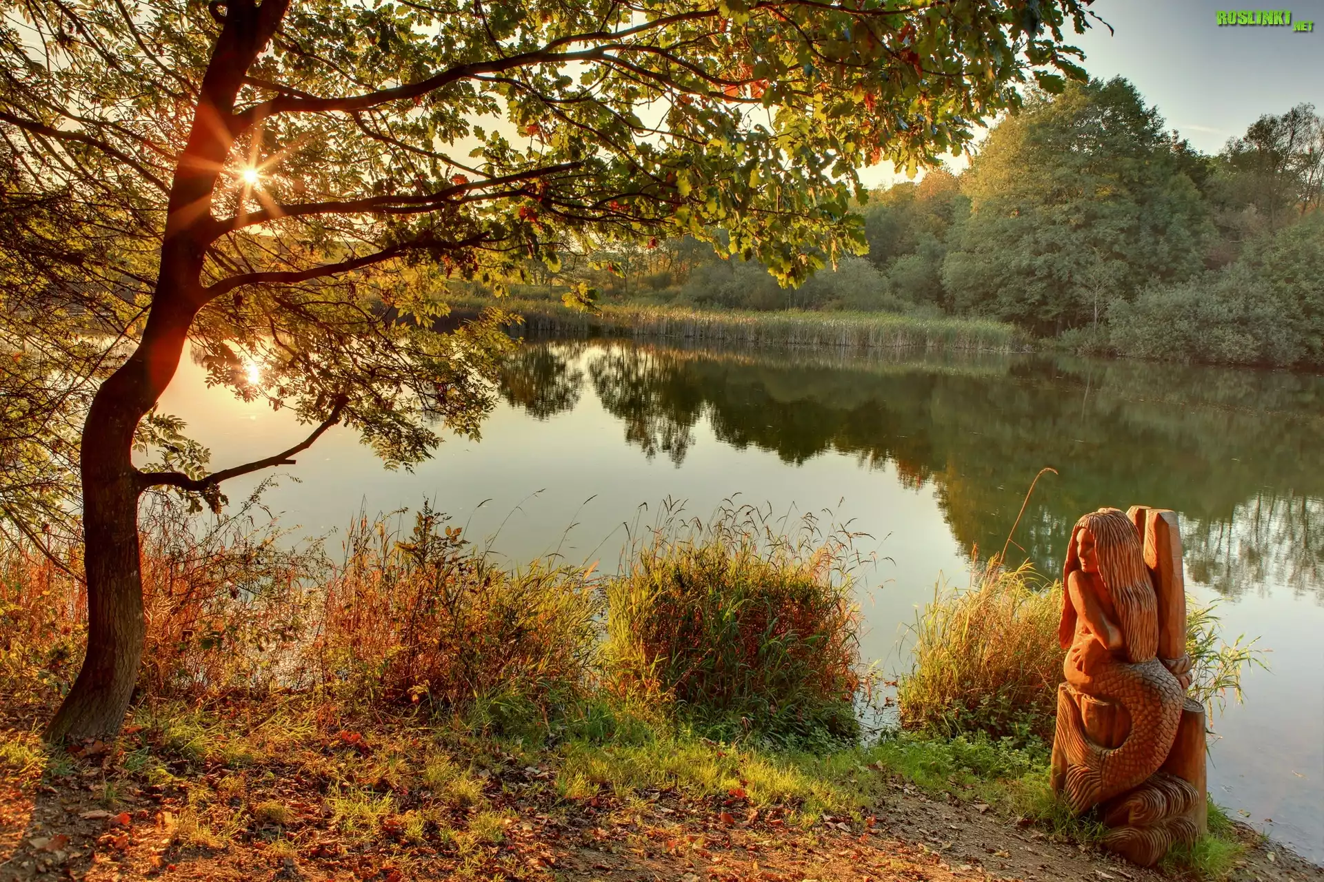 Rośliny: Rzeka, Promienie, Słońca, Drzewa, Syrena, Rzezba