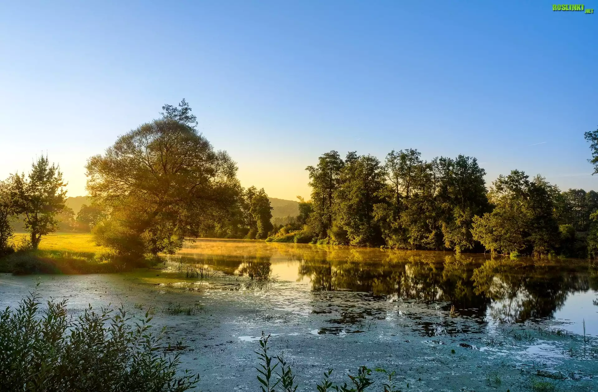 Rośliny: Rzeka, Drzewa, Przebijające, Światło, Odbicie