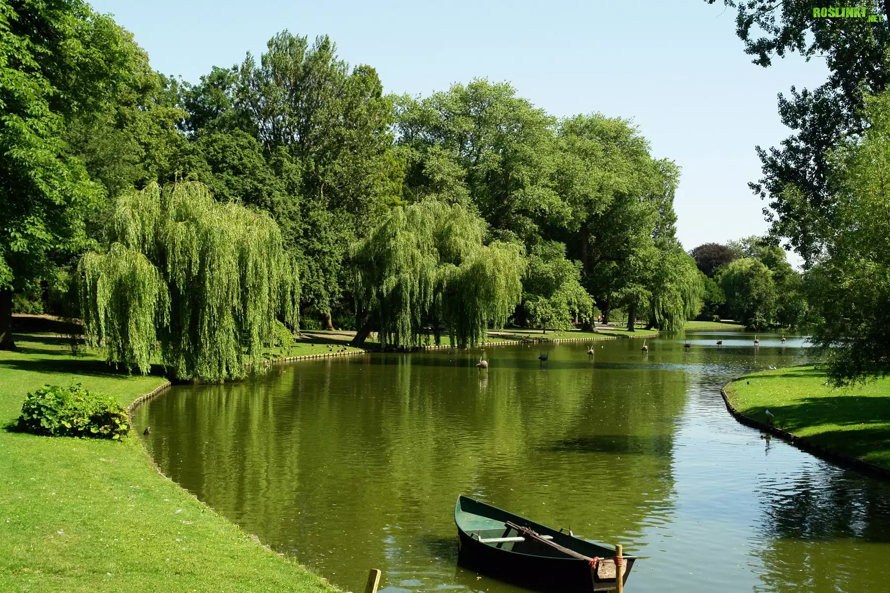 Rośliny: Rzeka, Drzewa, Wierzby, Łódka