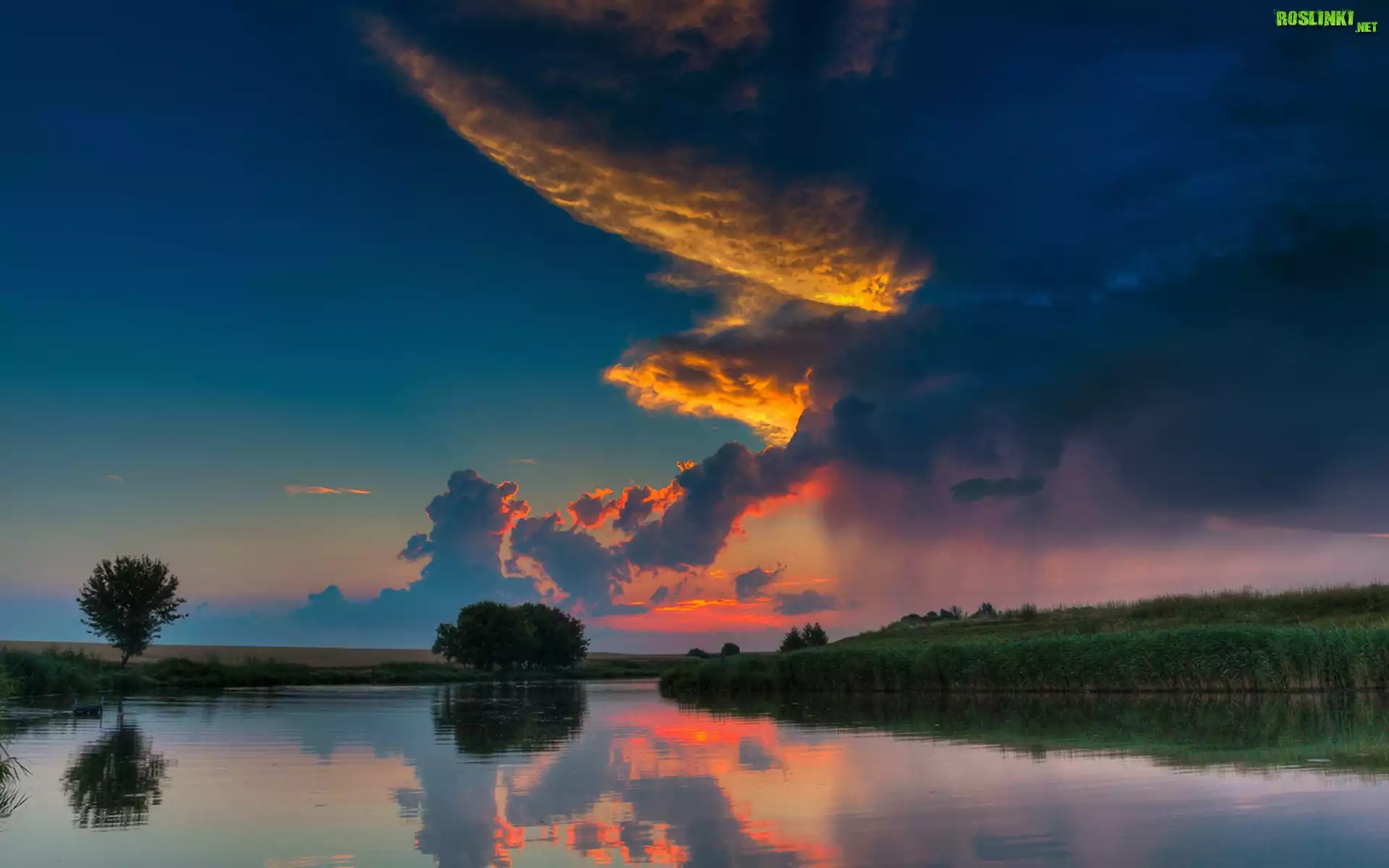 Rośliny: Rzeka, Drzewa, Chmury, Zachód, Słońca