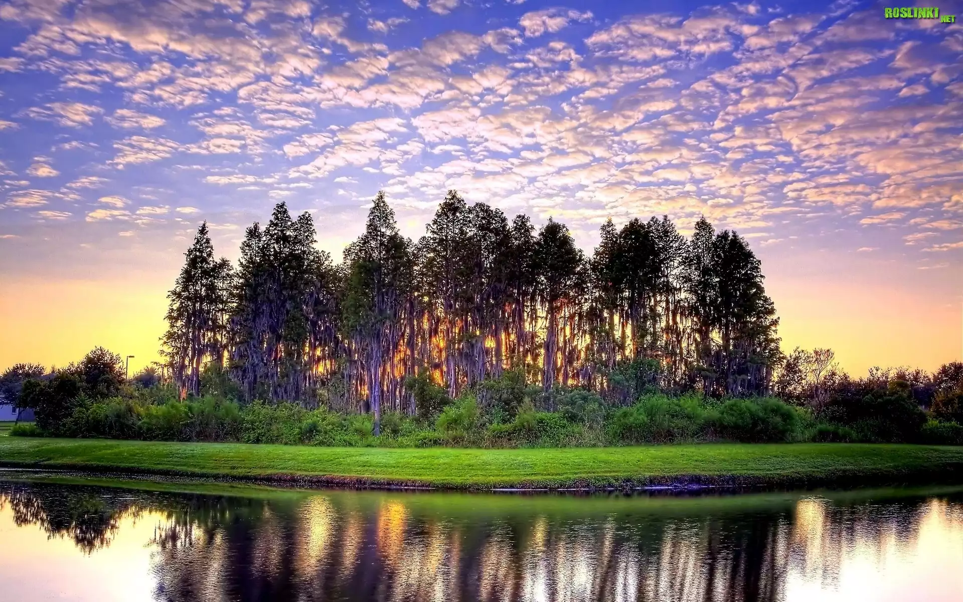 Rośliny: Rzeka, Drzewa, Zachód, Słońca