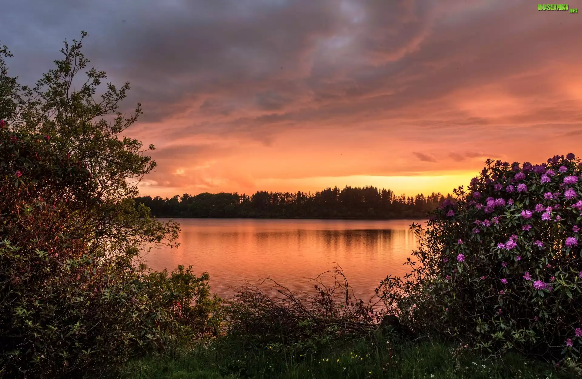 Rośliny: Rzeka, Drzewa, Krzewy, Zachód, Słońca