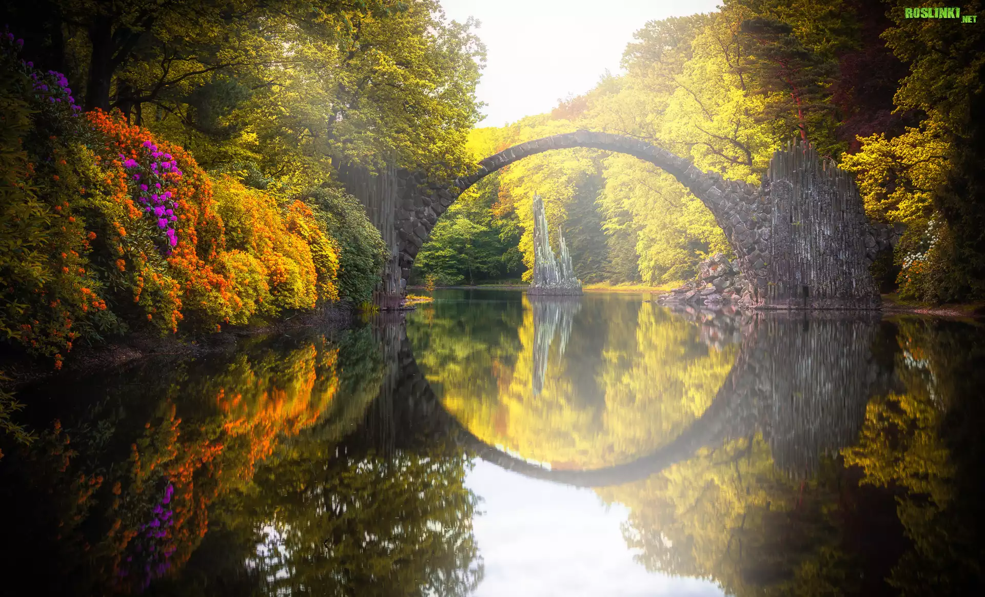 Rośliny: Niemcy, Saksonia, Gablenz, Jezioro Rakotz, Kamienny, Most, Skała