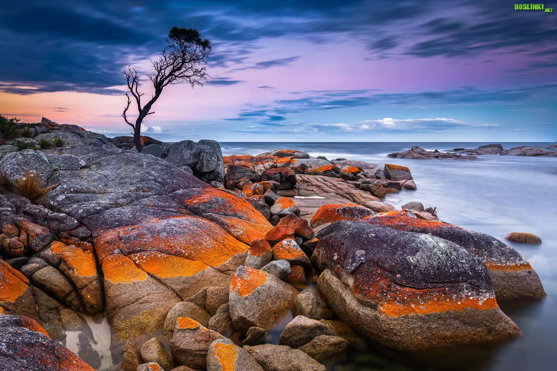 Rośliny: Samotne, Drzewo, Kamienie, Morze