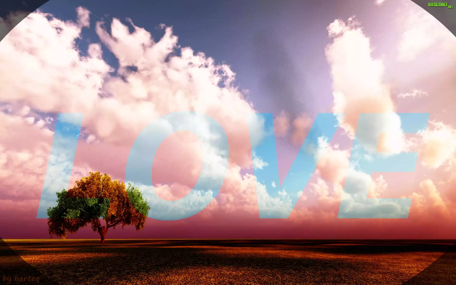 Rośliny: Samotne, Drzewo, Napis, Love