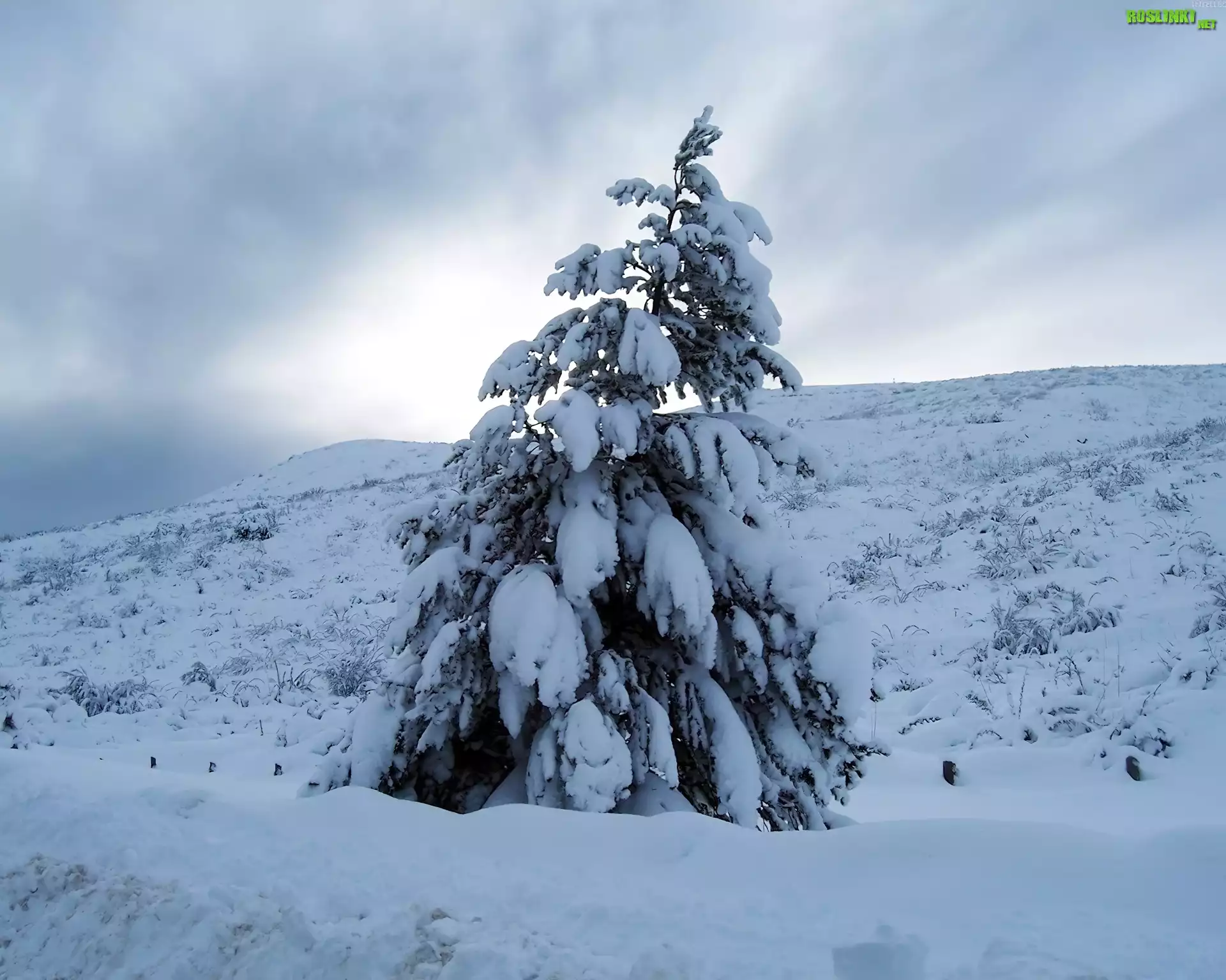Rośliny: Samotny, Świerk, Zasypany, Śniegiem