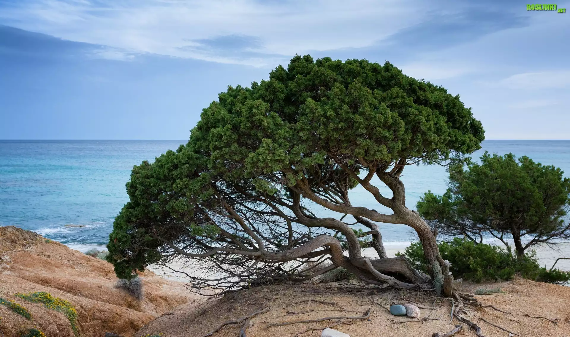 Rośliny: Włochy, Sardynia, Drzewa, Jałowce, Skały, Morze Tyrreńskie