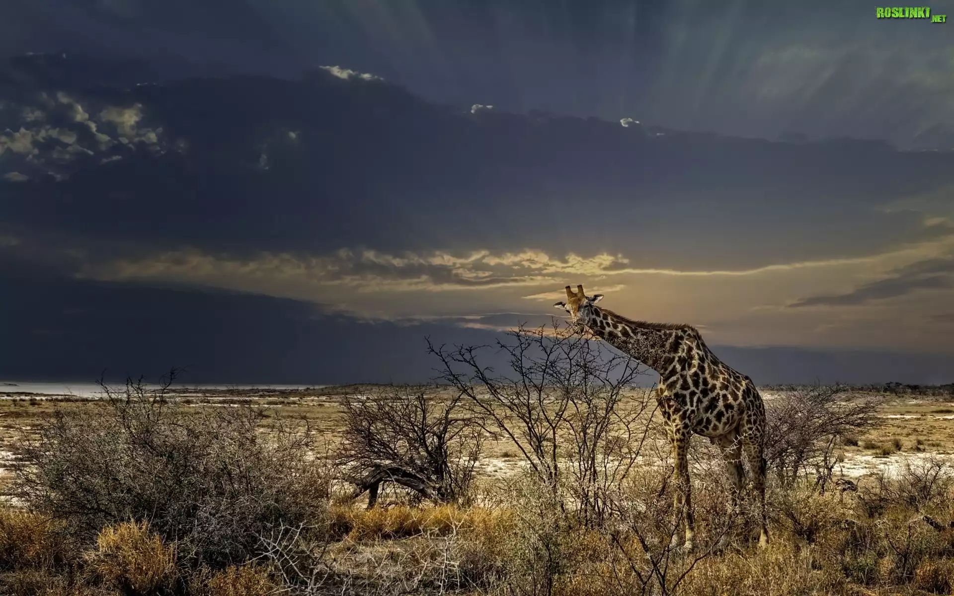 Rośliny: Żyrafa, Krzewy, Chmury, Sawanna, Afryka