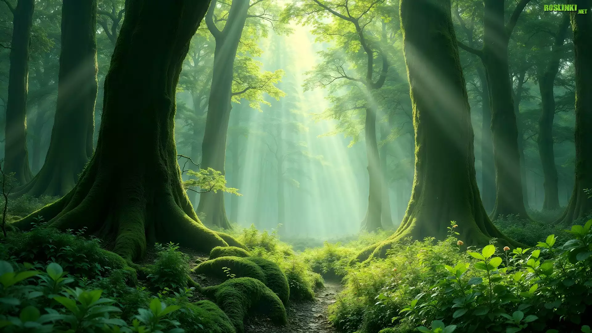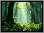 Rośliny: Las, Przebijające światło, Ścieżka, Omszałe, Korzenie, Drzewa