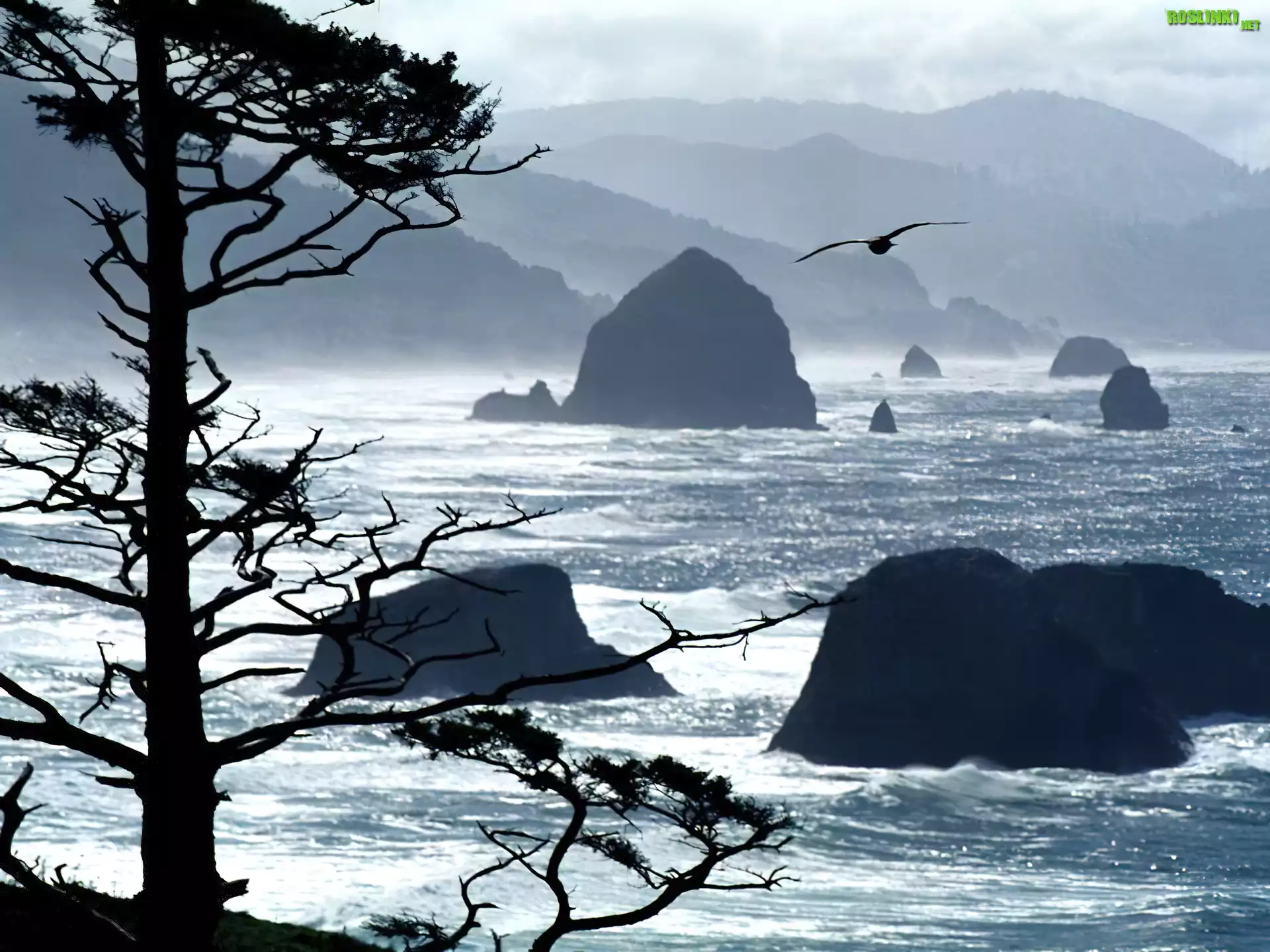 Rośliny: Drzewo, Skała, Morze