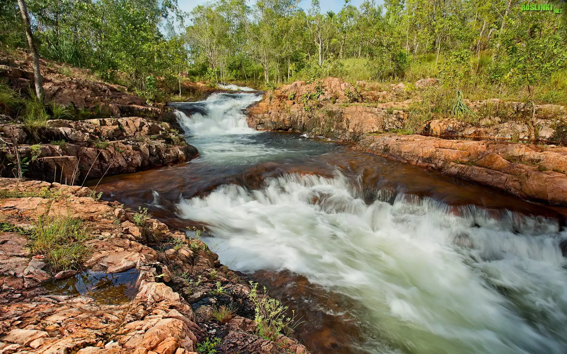 Rośliny: Rzeka, Skałki, Drzewa
