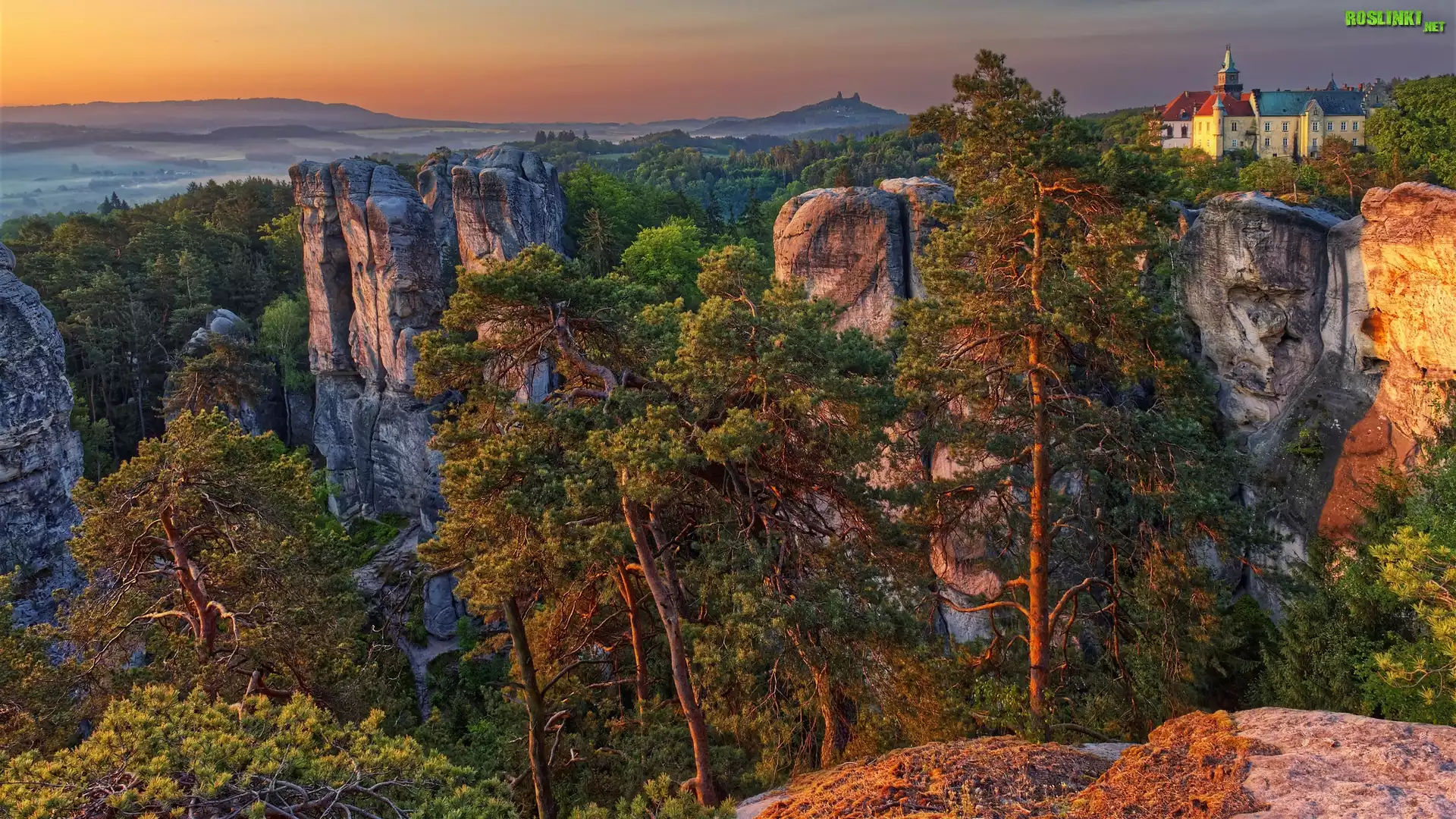 Rośliny: Formacje skalne, Skały, Drzewa, Skalne Miasto, Zamek Hruba Skala, Czeski Raj, Góry Stołowe, Czechy