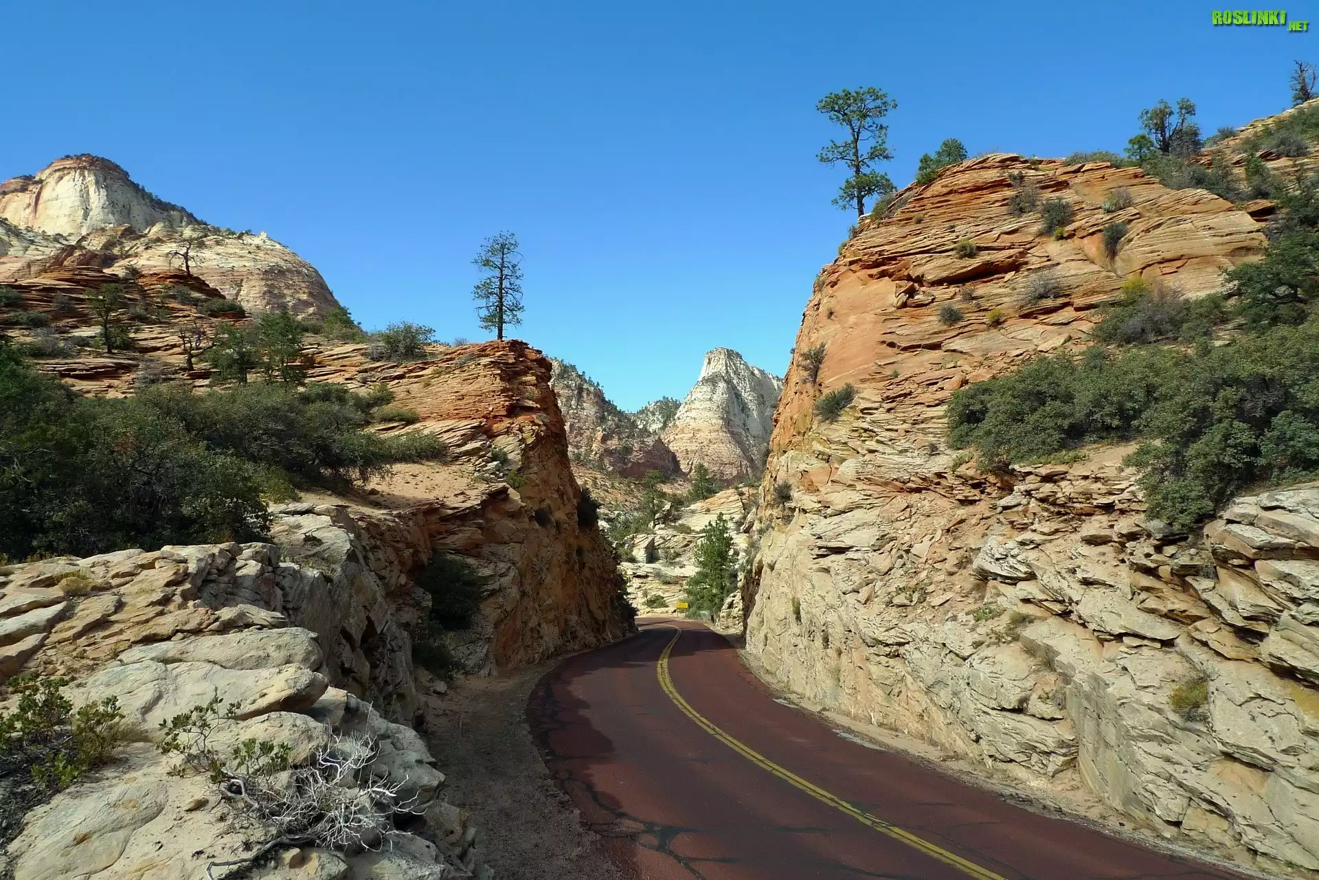 Rośliny: Skały, Droga, Drzewa, Niebo