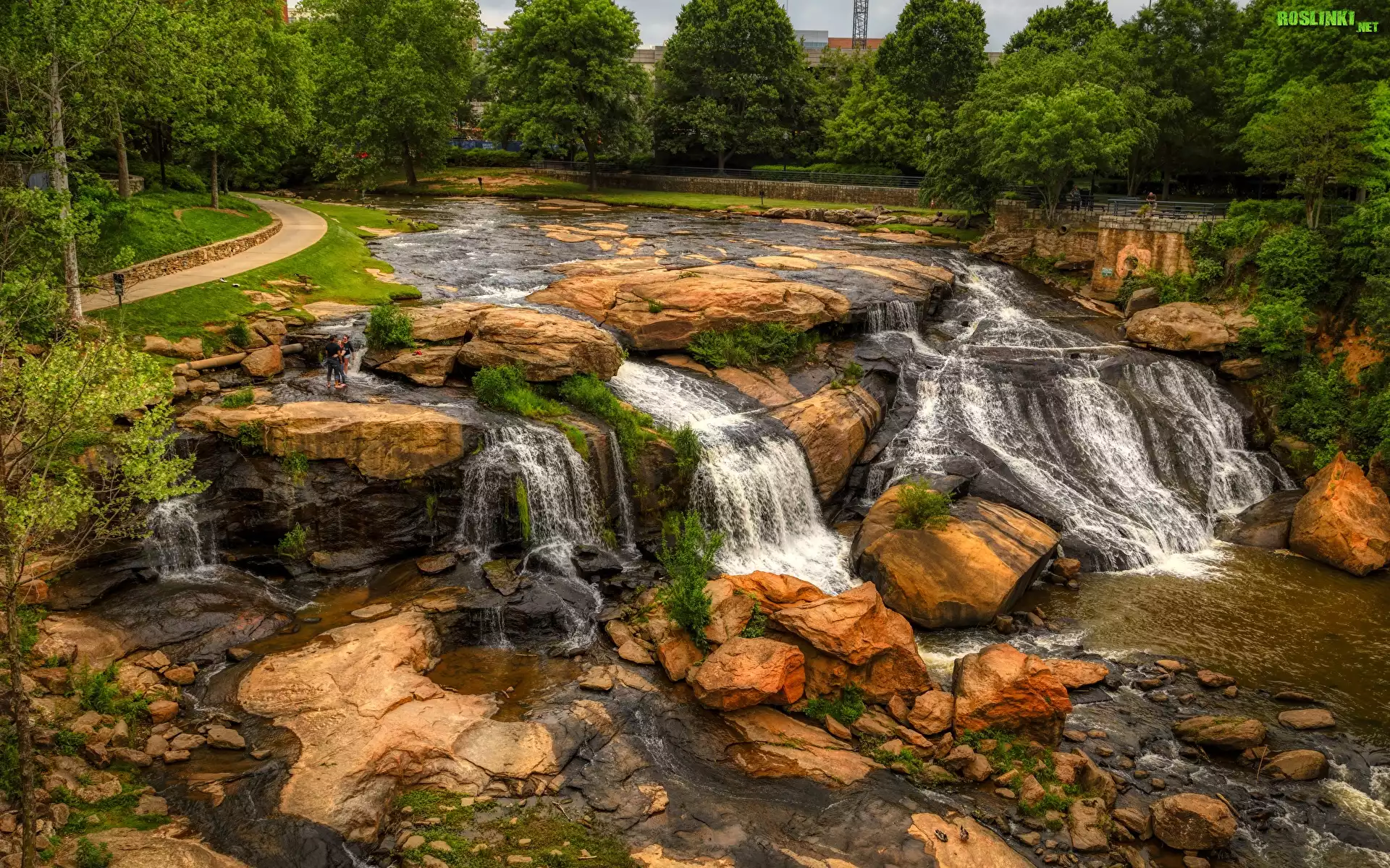Rzeka Reedy, Skały, Kamienie, Drzewa, Roślinność, Greenville, Karolina Południowa, Stany Zjednoczone |