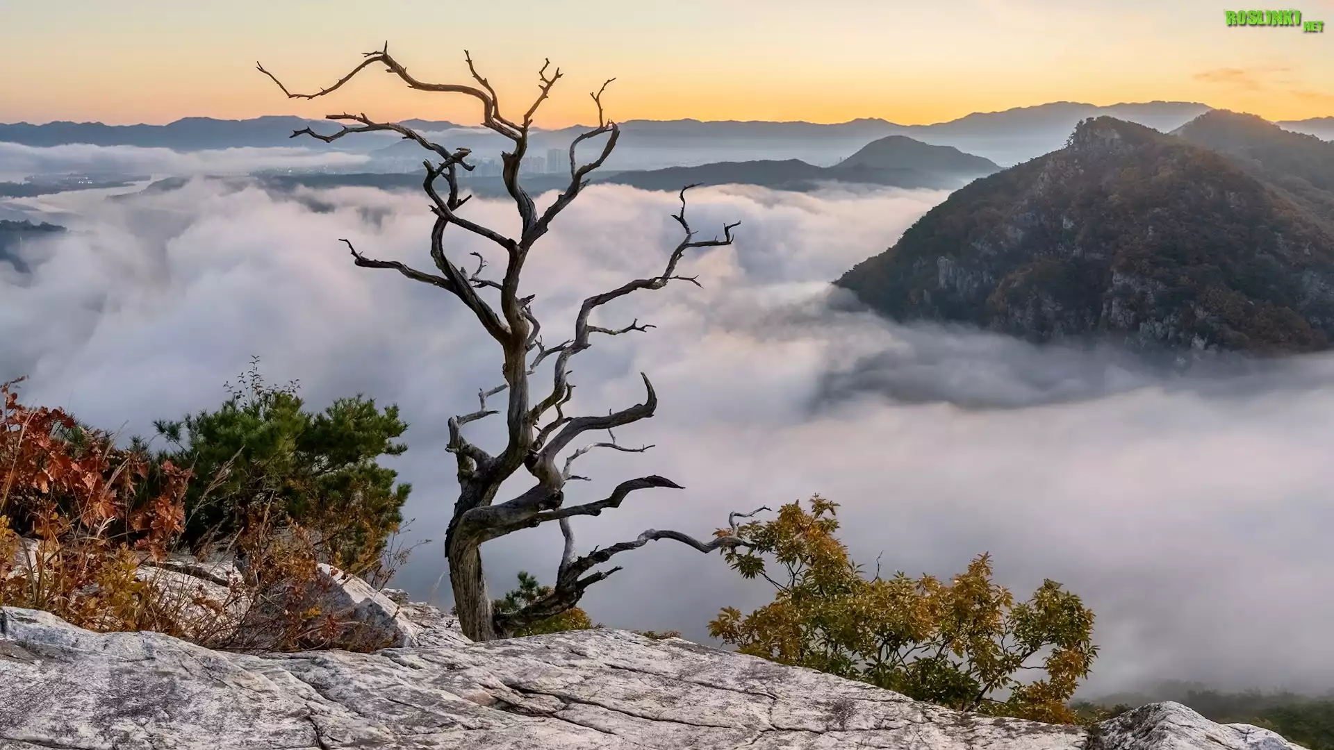 Rośliny: Góry, Skały, Mgła, Krzewy, Drzewo