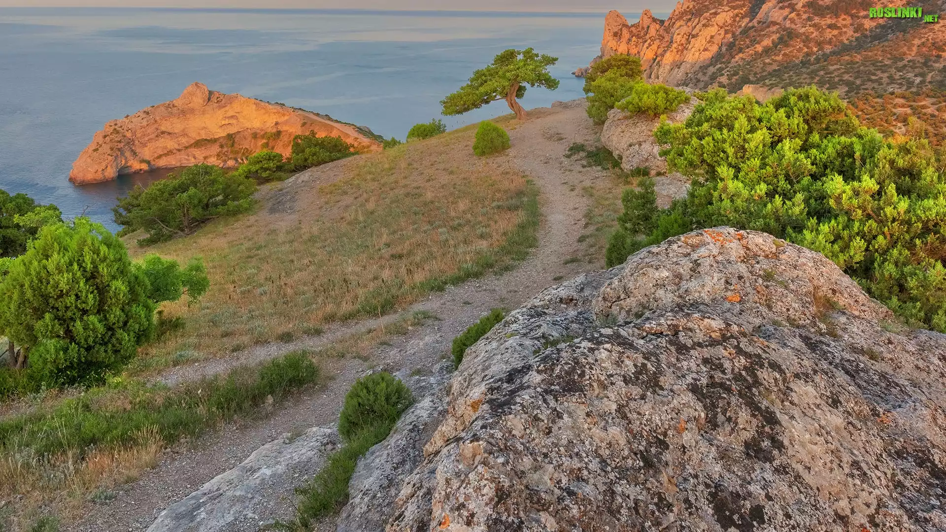 Rośliny: Morze, Skały, Droga, Drzewa, Krzewy, Sosna, Rośliny