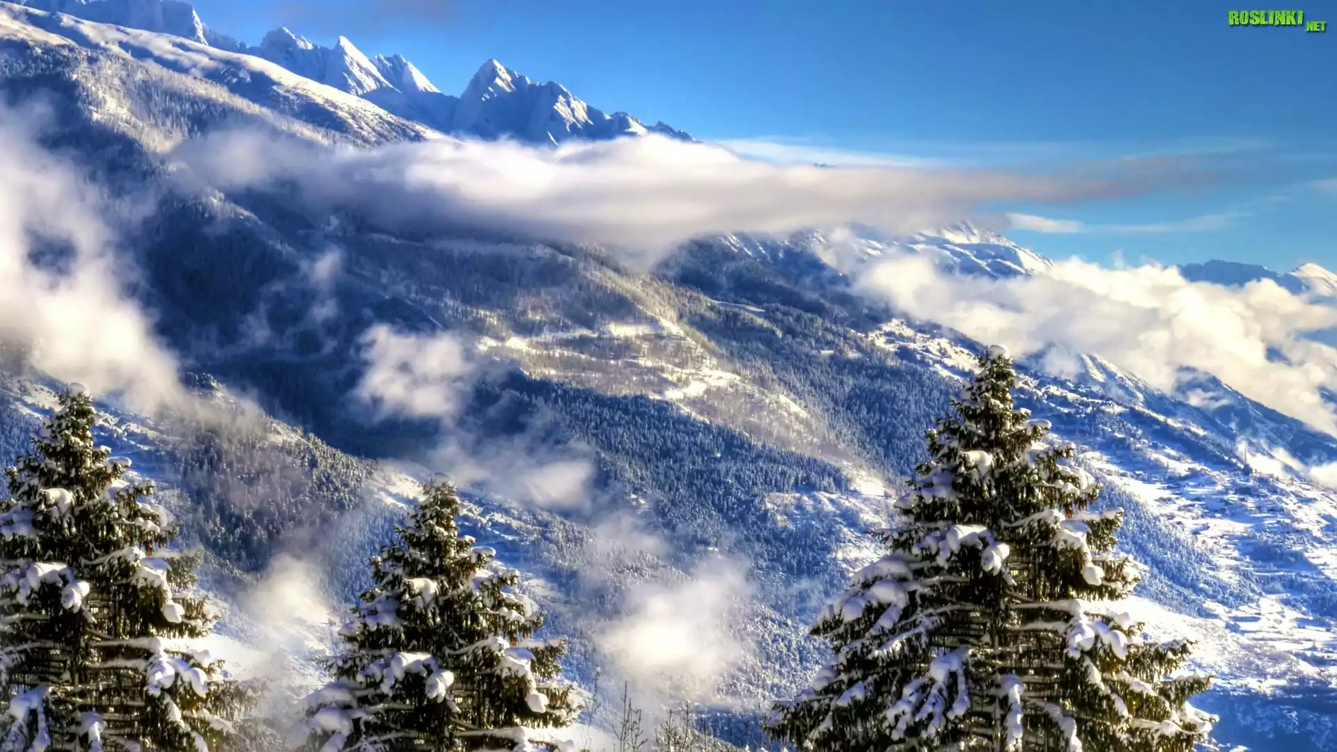 Rośliny: Skały, Chmury, Drzewa, Śnieg, Zima