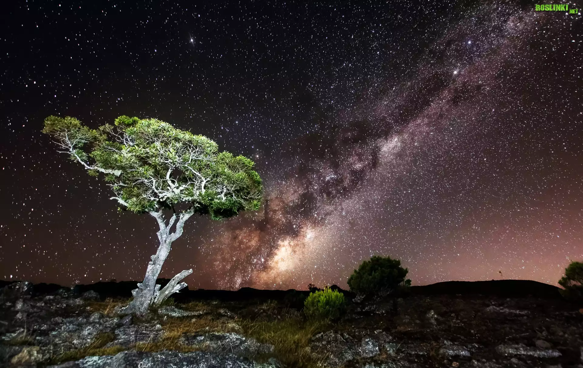 Rośliny: Skały, Drzewo, Noc, Gwiazdy