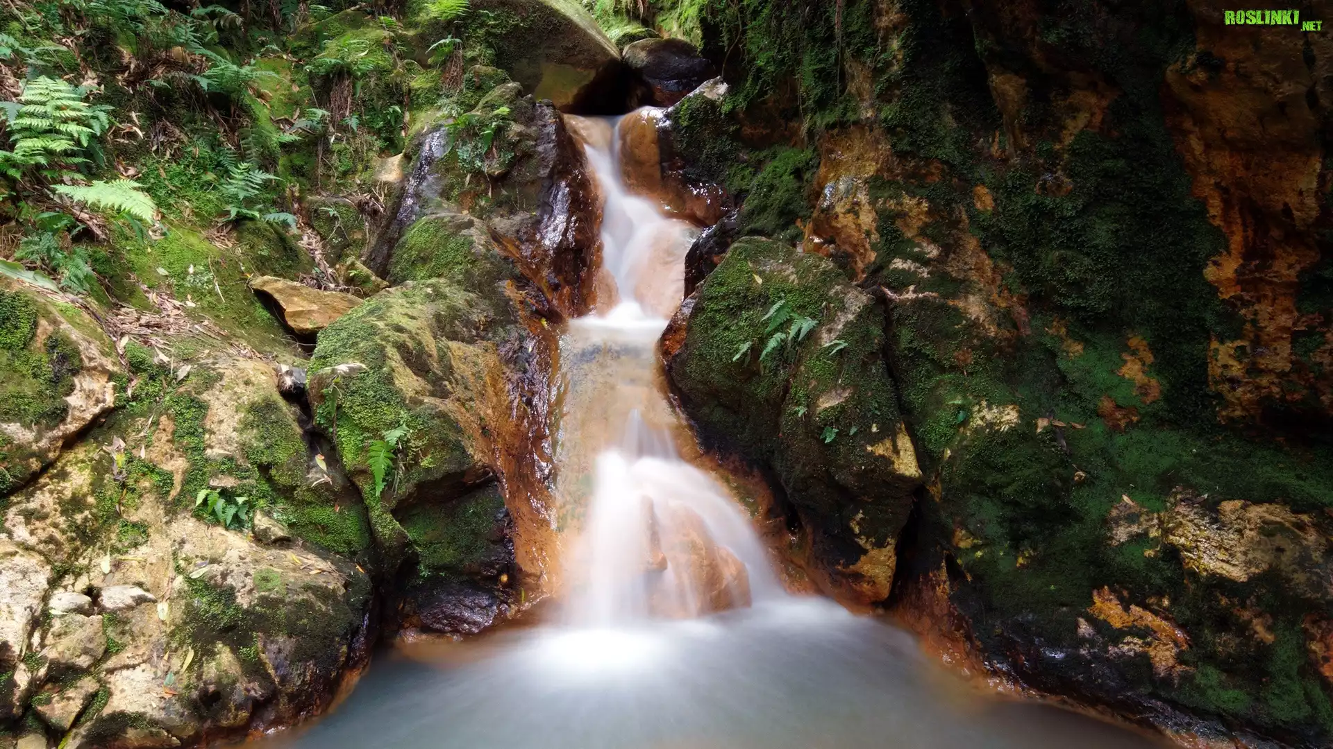 Rośliny: Skały, Mchy, Paprocie, Wodospad