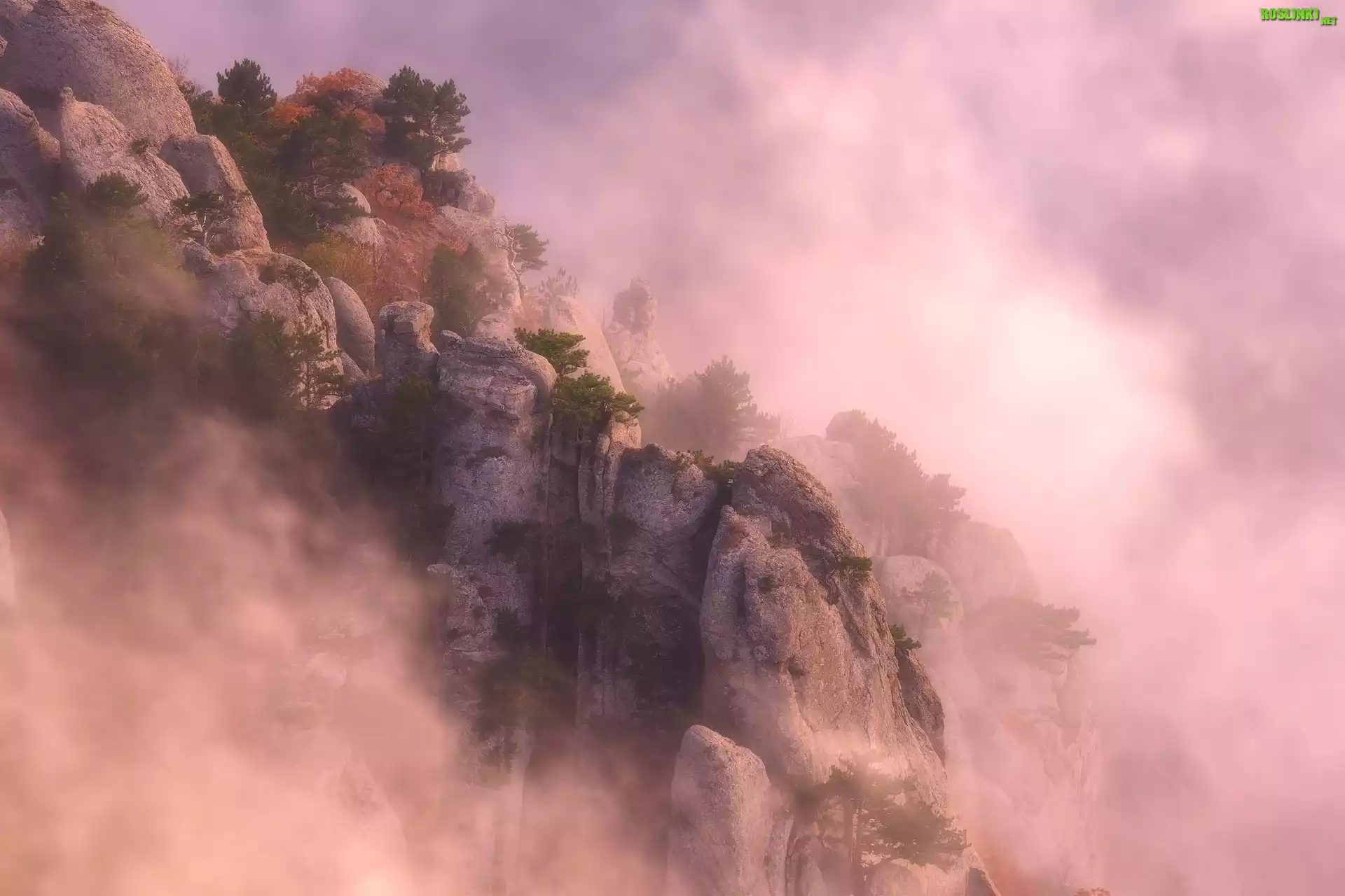 Rośliny: Skały, Mgła, Rośliny, Drzewa