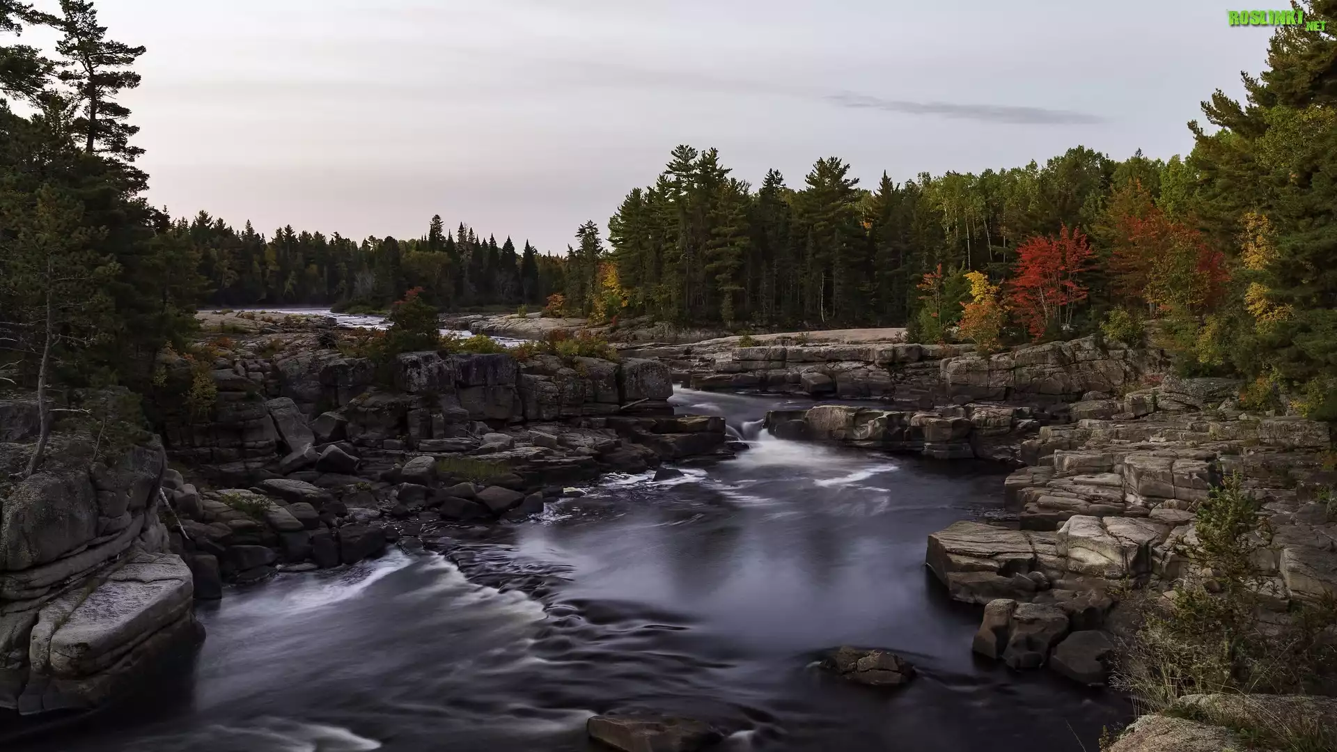 Rośliny: Jesień, Skały, Rzeka, Kolorowe, Drzewa