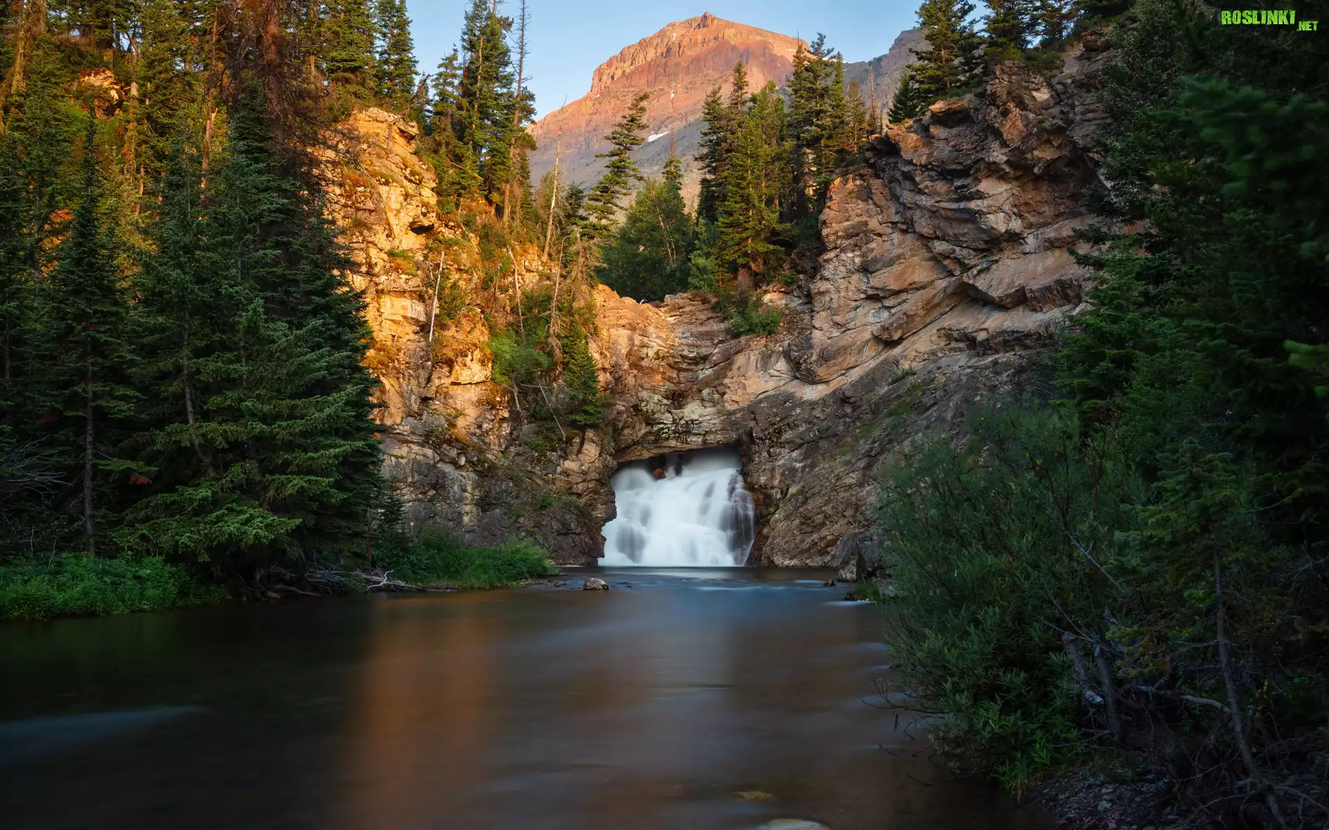 Rośliny: Las, Drzewa, Góry, Skały, Wodospad, Rzeka