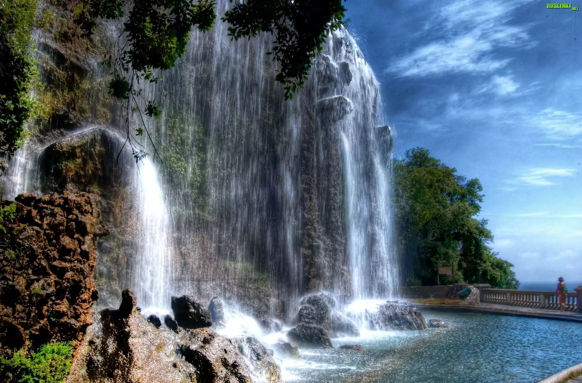 Rośliny: Wodospad, Skały, Drzewa