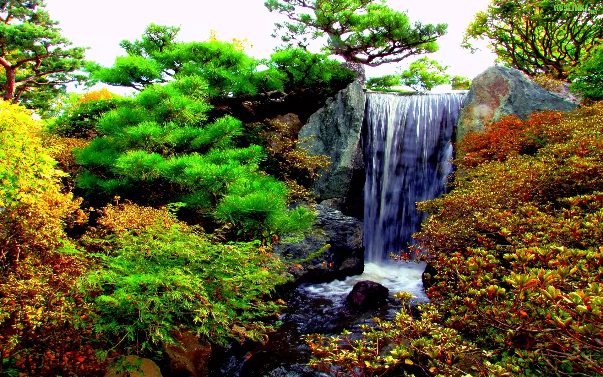 Rośliny: Wodospad, Skały, Krzewy