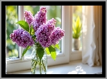 Kwiaty, Lilak, Bez, Słoik, Parapet, Okno