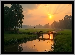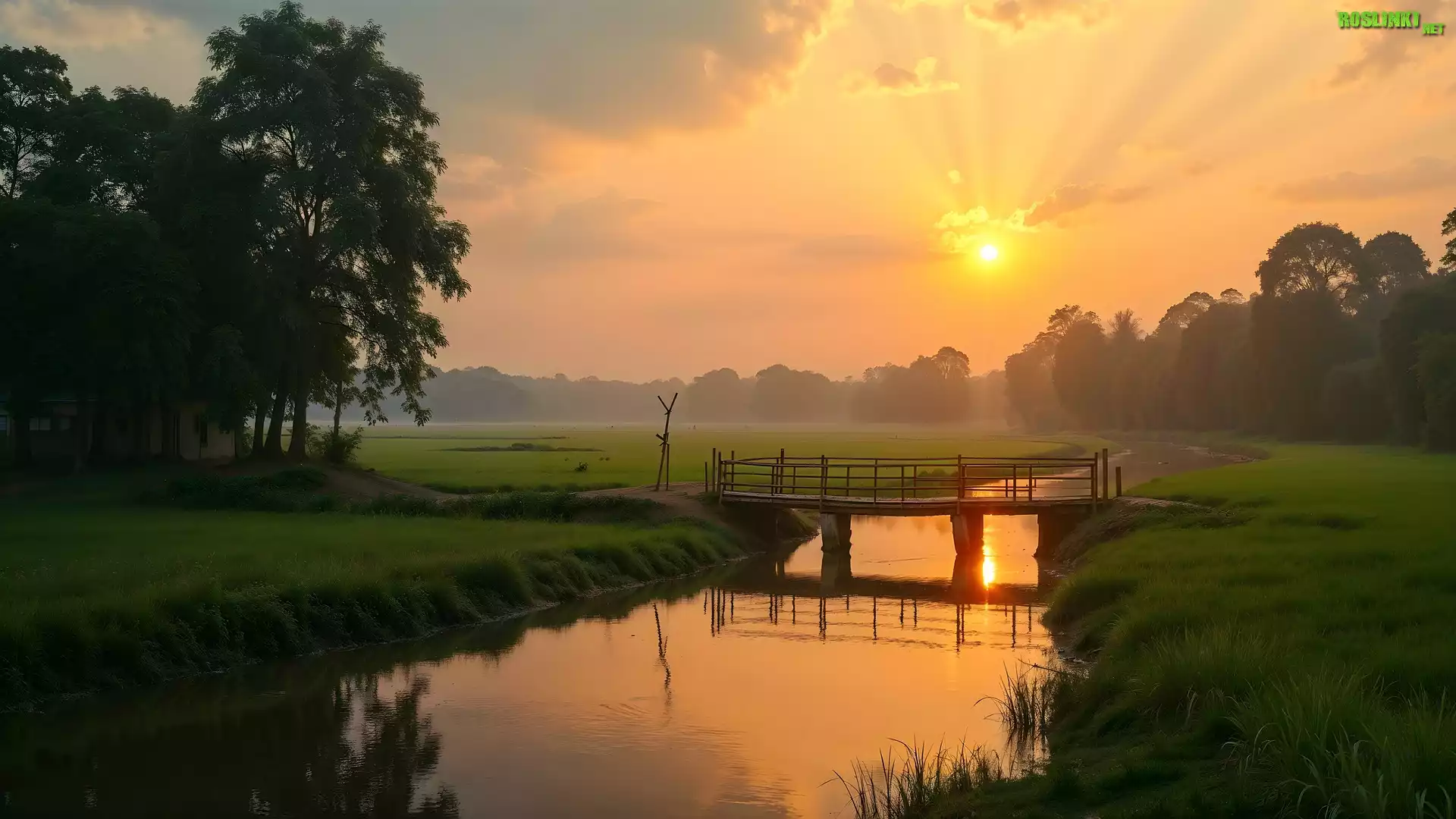 Rośliny: Rzeka, Most, Zachód słońca, Drzewa, AI