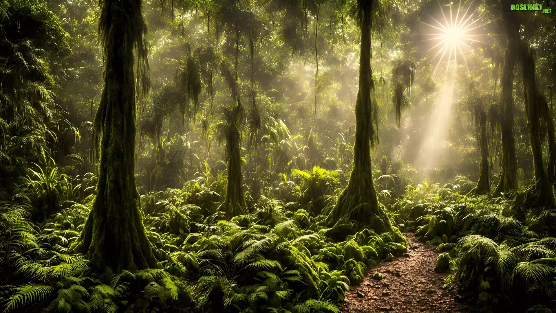 Rośliny: Las, Drzewa, Paprocie, Ścieżka, Paprocie, Roślinny, Promienie słońca