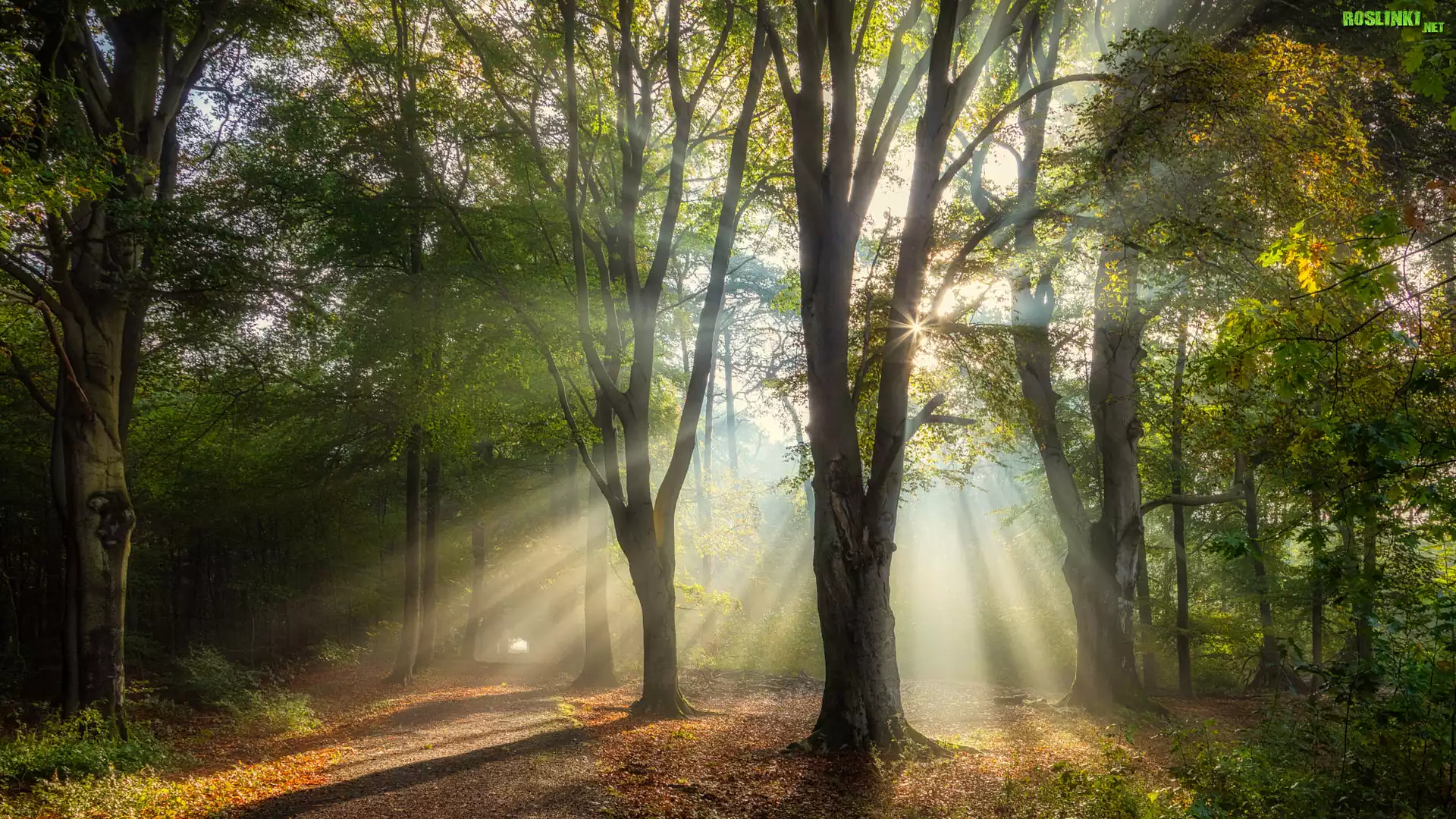 Rośliny: Las, Drzewa, Promienie słońca, Przebijające światło, Droga