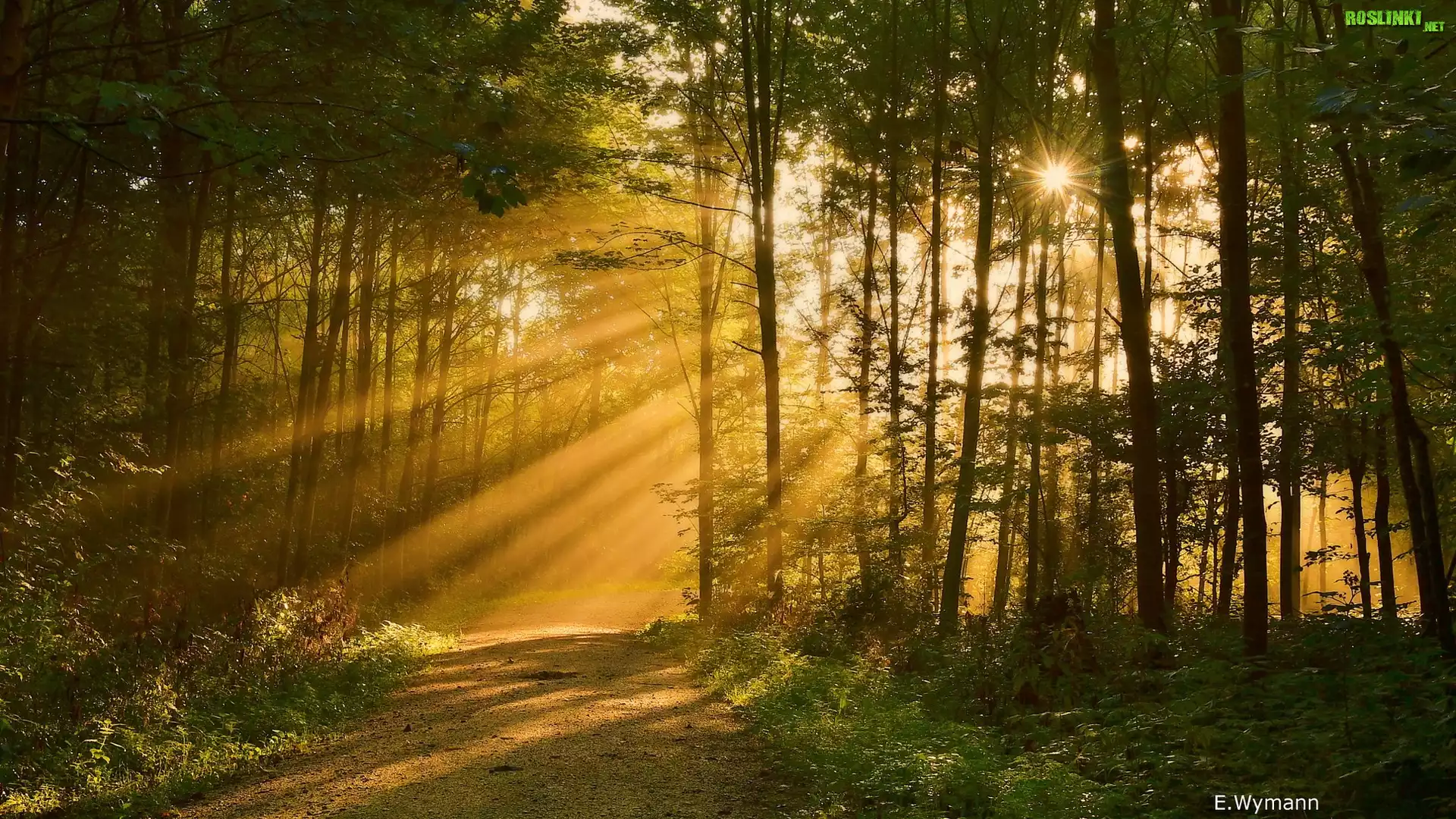 Rośliny: Drzewa, Las, Promienie słońca, Droga, Przebijające światło