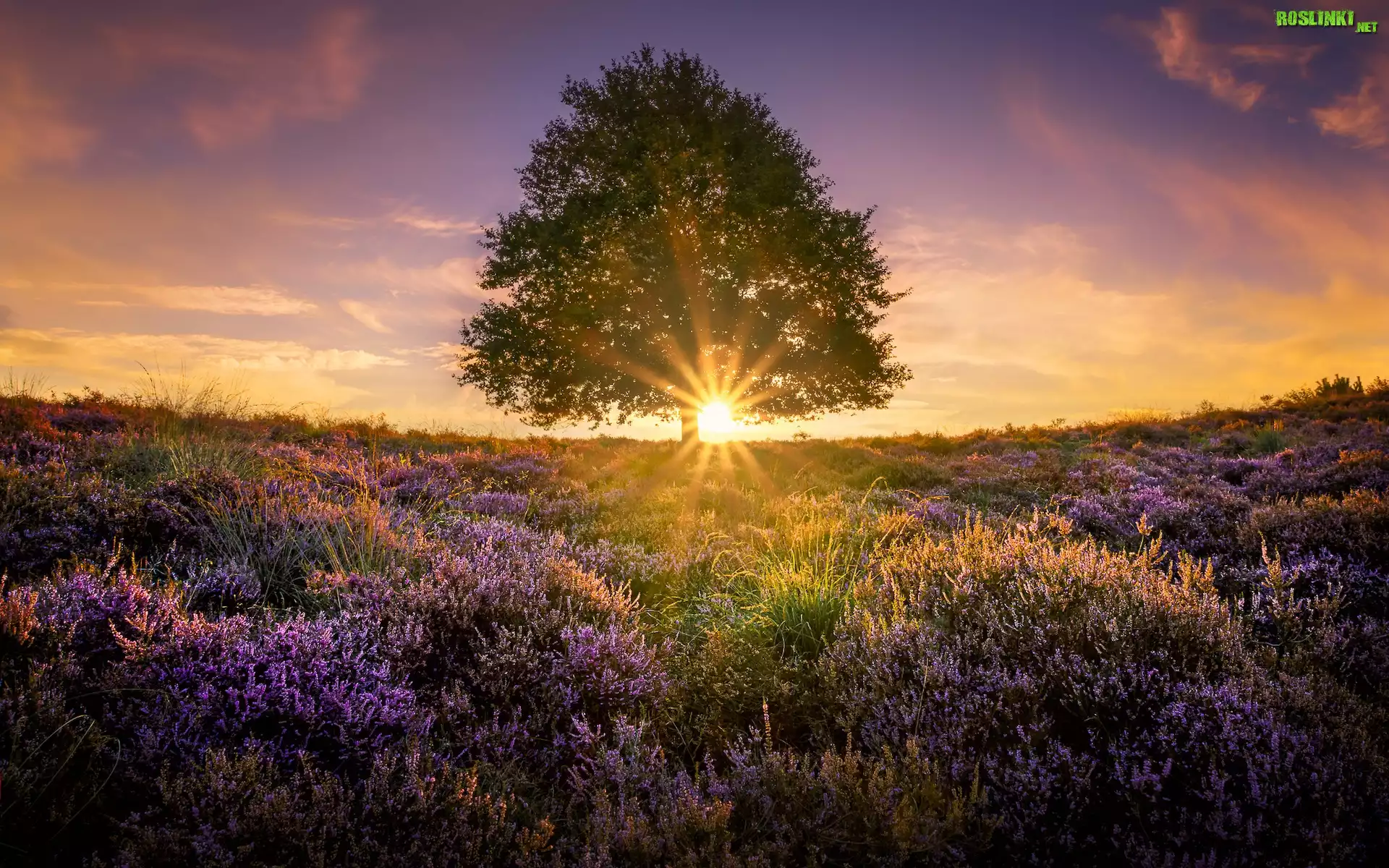 Rośliny: Wrzosowisko, Drzewo, Promienie słońca
