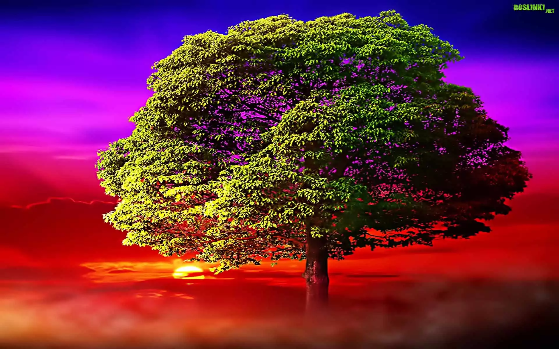Rośliny: Zachód, Słońca, Drzewo