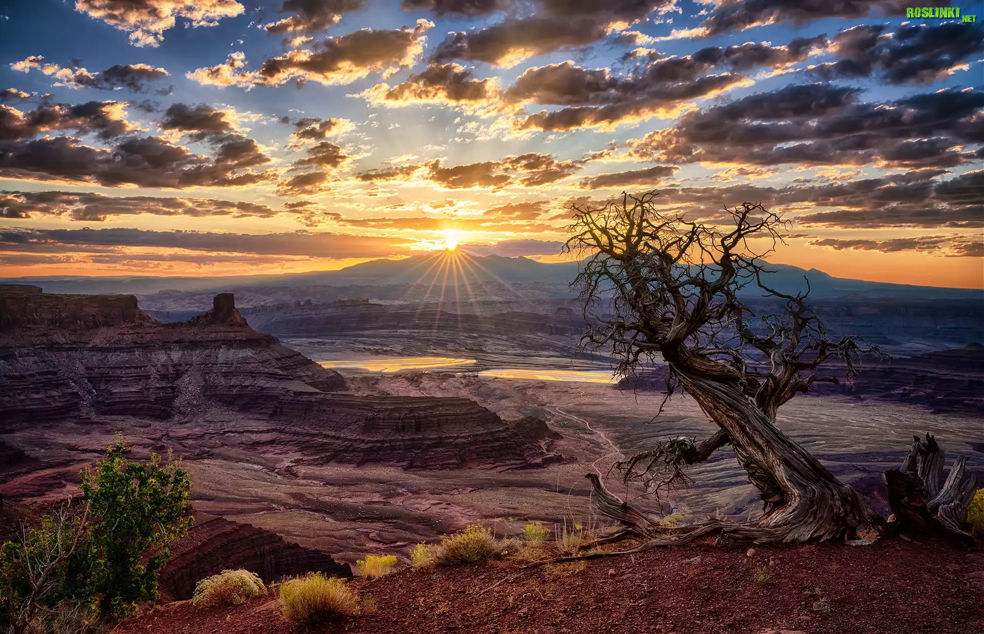 Rośliny: Zachód słońca, Kanion, Skały, Suchy, Konar, Drzewo