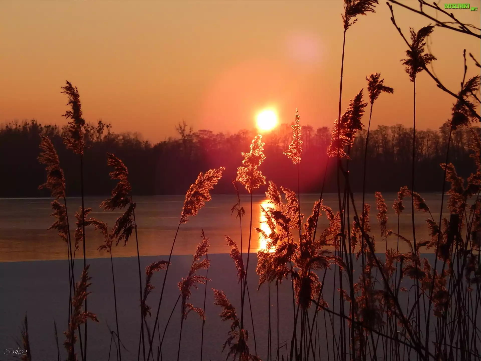 Zachód, Słońca, Trzcina